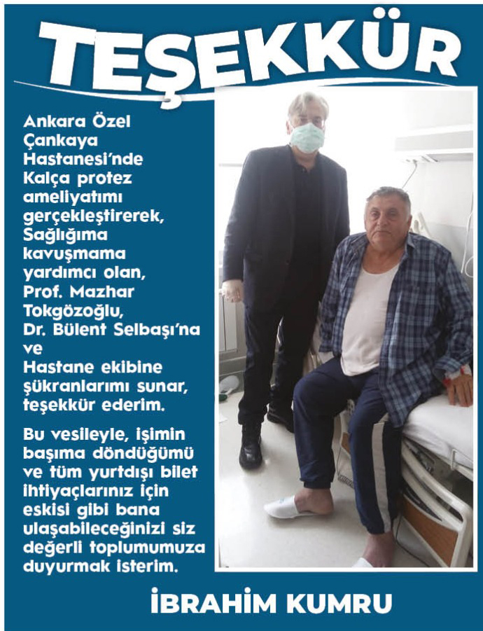 Avustralya’da uzun yıllar Turizm sektöründe hizmet veren İşadamı İbrahim Kumru, geçirmiş olduğu ameliyattan sonra teşekkür ilanı yayınladı.