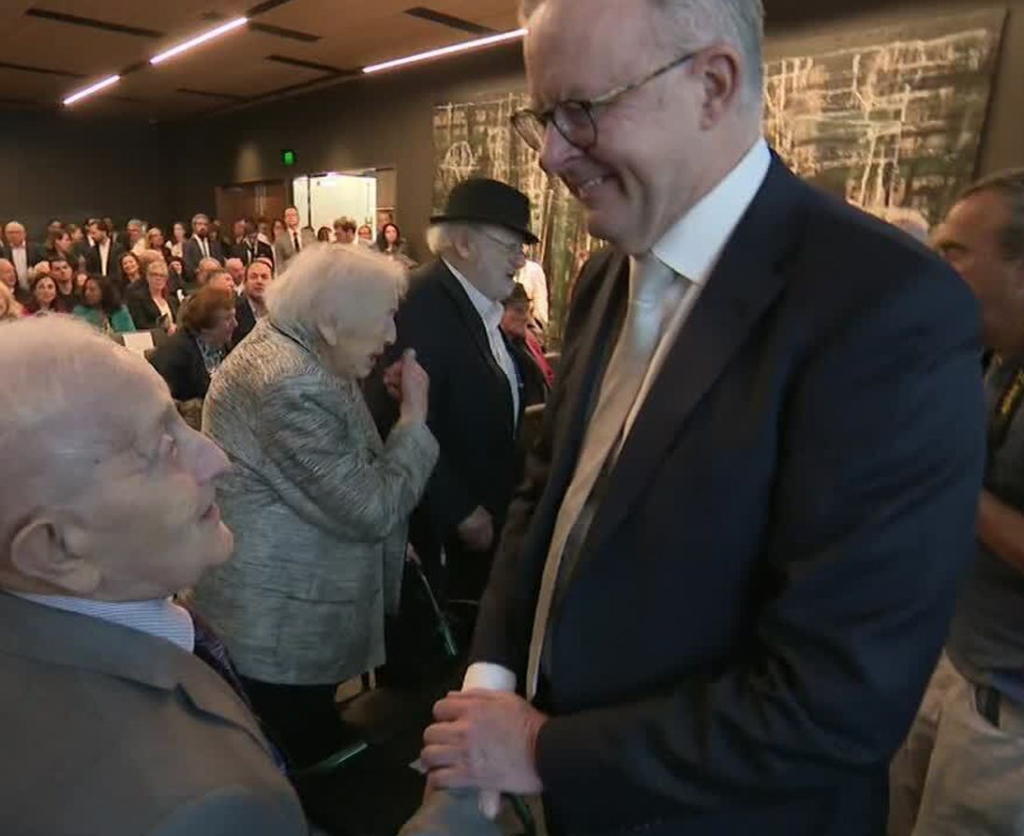 Albanese ve Muhalefet Lideri Peter Dutton, Elsternwick’teki Melbourne Holokost Müzesi’nin yeniden açılışında soykırımdan sağ kurtulanlar ve Yahudi cemaati üyeleriyle konuştu.