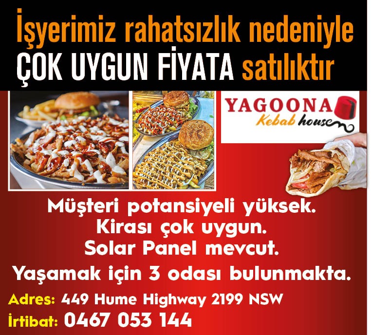 Sağlık nedenlerinden dolayı, müşteri potansiyeli yüksek kebab iş yeri NSW eyaletinde satılıktır.