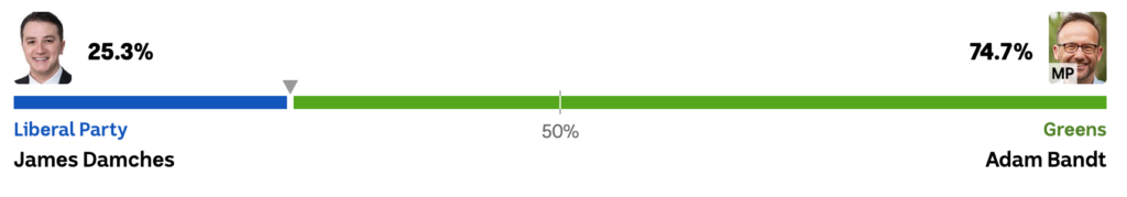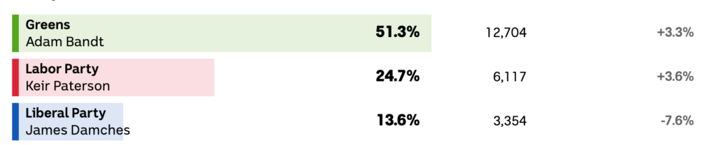 Yeşiller partisinin Lideri Adam Bandt, Melbourne koltuğunu korudu.