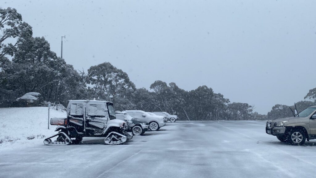 Victorianın Marysville bölgesindeki Lake Mountain (dağı) bölgesine Pazartesi günü kar taneleri düşmeye başladı.
