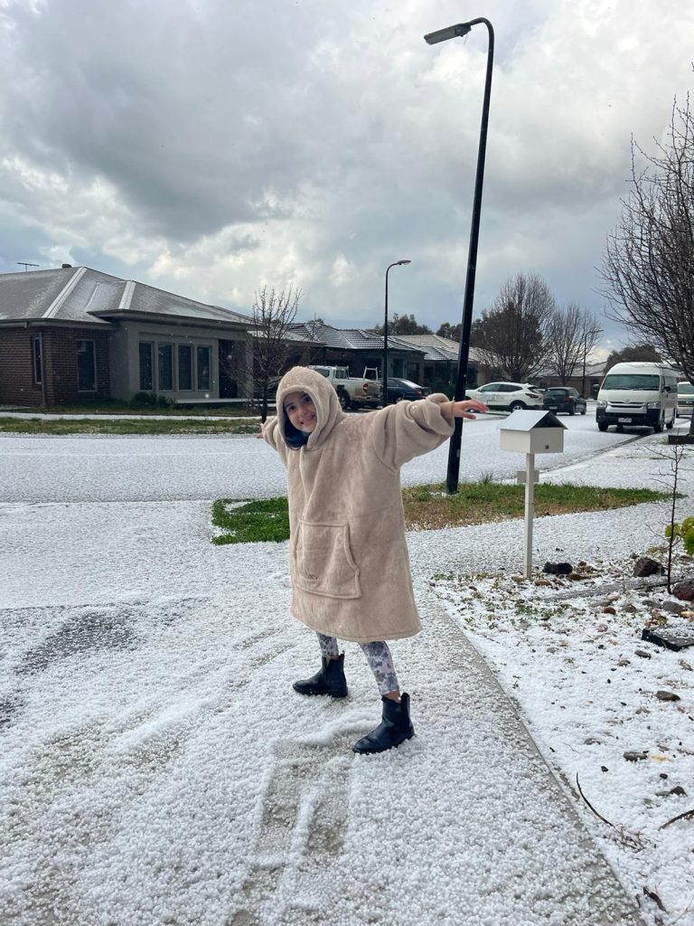 Cumartesi günü saat 01.55’te yoğun dolu yağışı yaşandığını aktaran Alper Aldemir, “Dolu yağışı ile Craigieburn bembeyaza büründü. Daha önce böyle bir olay görmeyen kızımı çağırıp beyaza bürünen evimizi, sokaklarımızı gösterdim. Oldukça sert ve yoğun bir dolu yağışı gözlemledik. Bölgemizde ilk defa bu kadar dolu yağışı gördüm. Dolu topları yaptık ve kızımla oynadık. Kızım kar yığınlarını andıran sokağımızda buzun üstünde kaymaya başladı. Kızım Asel, o kadar eğlendi ki dolunun üzerinde bile yattı.” şeklinde konuştu.