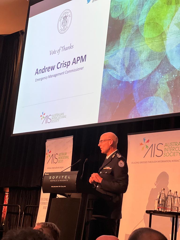 Gecenin kapanış ve teşekkür konuşmasını Victoria Acil Durum Yönetimi Komiseri Andrew Crisp yaptı. Chris, tüm davetlilere geceye katıldıkları için teşekkür etti.