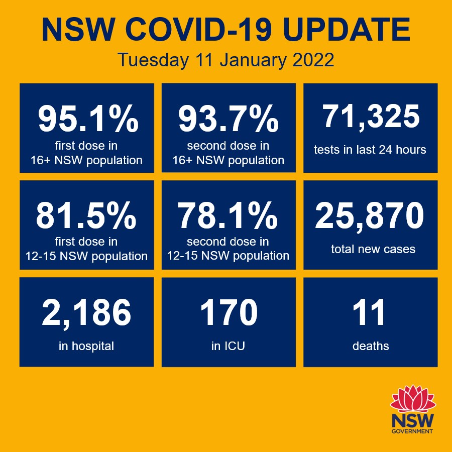 NSW Eyaleti, son 24 saat içinde 25.870 COVID-19 vakası ve 11 ölüm kaydetti.