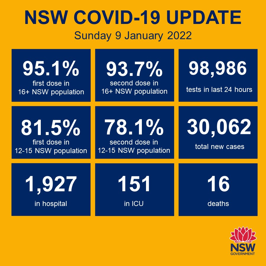 NSW’de Cumartesi gününden itibaren son 24 saatte 16 kişi COVID’den ölürken ve 30.062 resmi vaka kaydedildi.