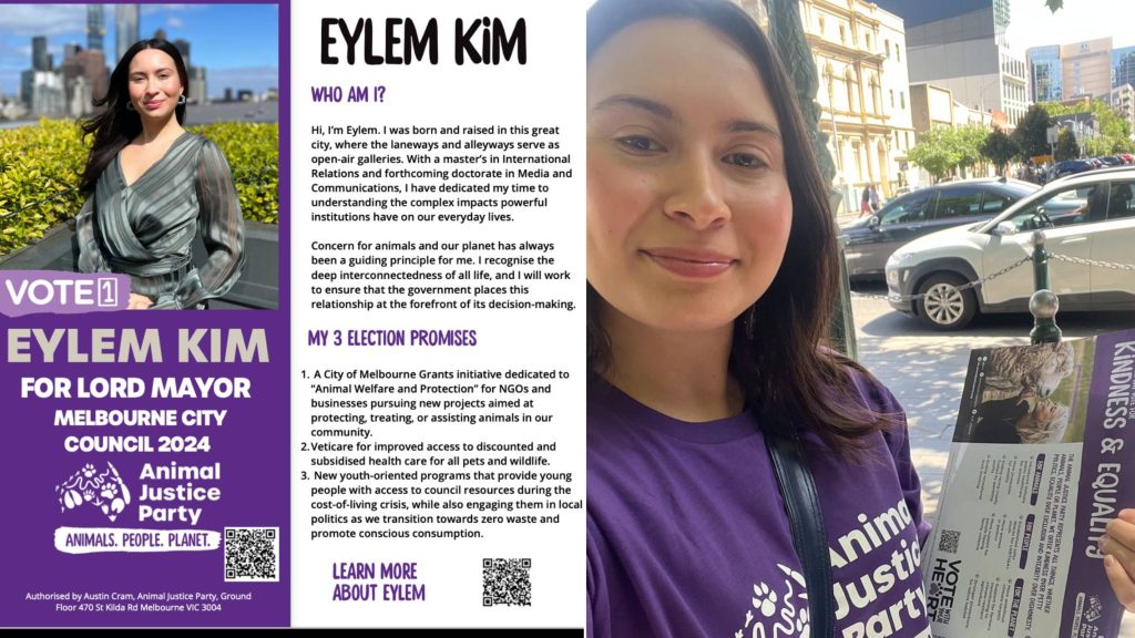 Eylem Kim, belediye başkanlığı adaylığı teklifiyle karşılaştığında tereddüt etse de, yaşadığı şehir Melbourne için, sevdiği hayvanların hakları için ve dünya için bir şeyler yapabilme heyecanıyla, 11 aday arasında yer almayı kabul etti. Melbourne’daki yerel seçimlerde, Victoria eyaletindeki 79 yerel meclis için oylamalar bu ay yapılacak.