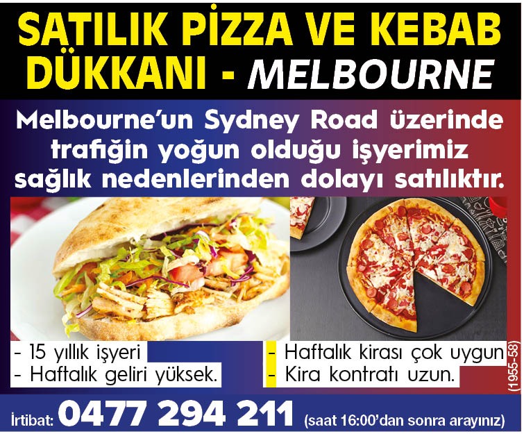 Melbourne’un en işlek caddelerinde biri olan Sydney Rd. üzerinde pizza ve kebab dükkanı satılık.