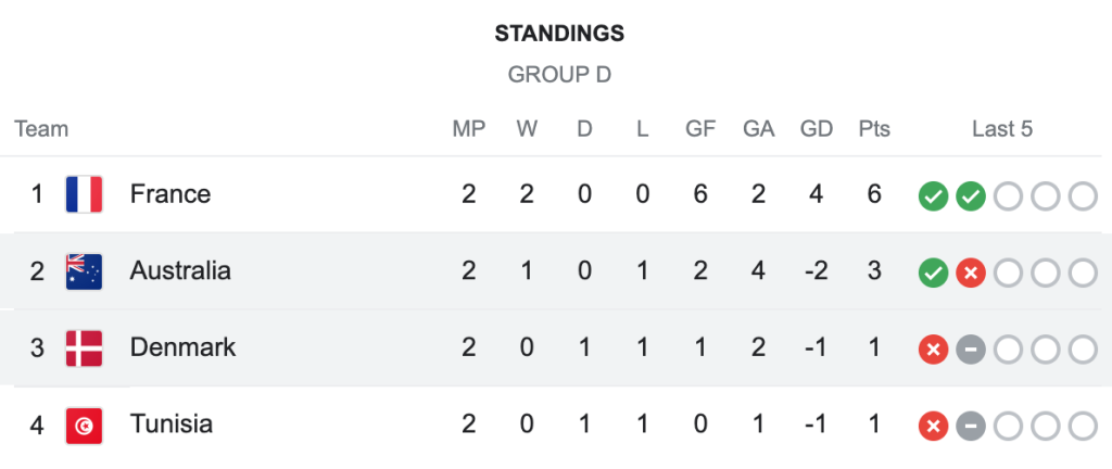 Avustralya – Danimarka maçı 1 Aralık tarihinde gece saat 02:00’de (Avustralya saatiyle) başlayacak. Aynı anda Fransa – Tunus maçı da oynanacak.