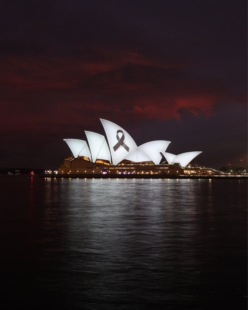 Sydney Opera Binası’nın yelkenleri, Türkiye ve Suriye’deki depremlerden etkilenen herkes için dayanışma ve yas sembolü olarak siyah bir kurdele ile aydınlatılıyor.