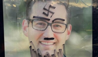 FEDERAL MİLLETVEKİLİNE VANDALİZM Gamalı haç ve Hitler bıyığı