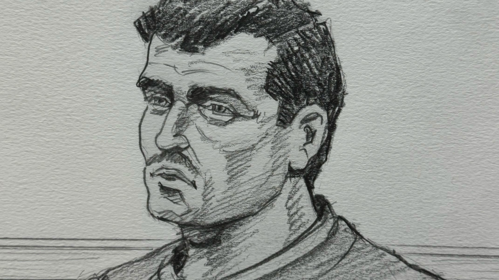 43 yaşındaki sanığın mahkeme krokisi. (9News)