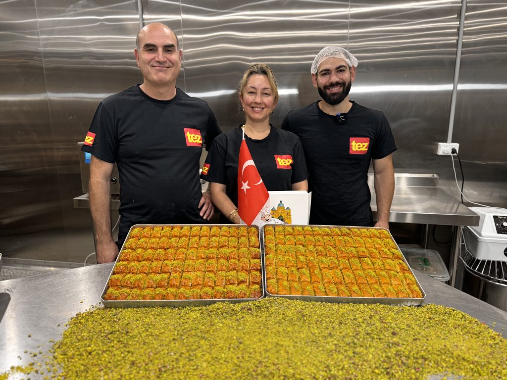 Tez Foods’un imalat müdürü Yeşim Tezcan, Baklava yapımından sorumlu Kemal Tezcan, firmanın idari işlerinden sorumlu Oğuz Tezcan