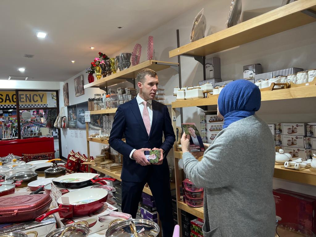 Meadows ve Greenvale Alışveriş merkezlerindeki iş yerlerini ziyaret eden Iwan Walters, iş verenlerin ve çalışanların sorunları dinledi ve notlar aldı.