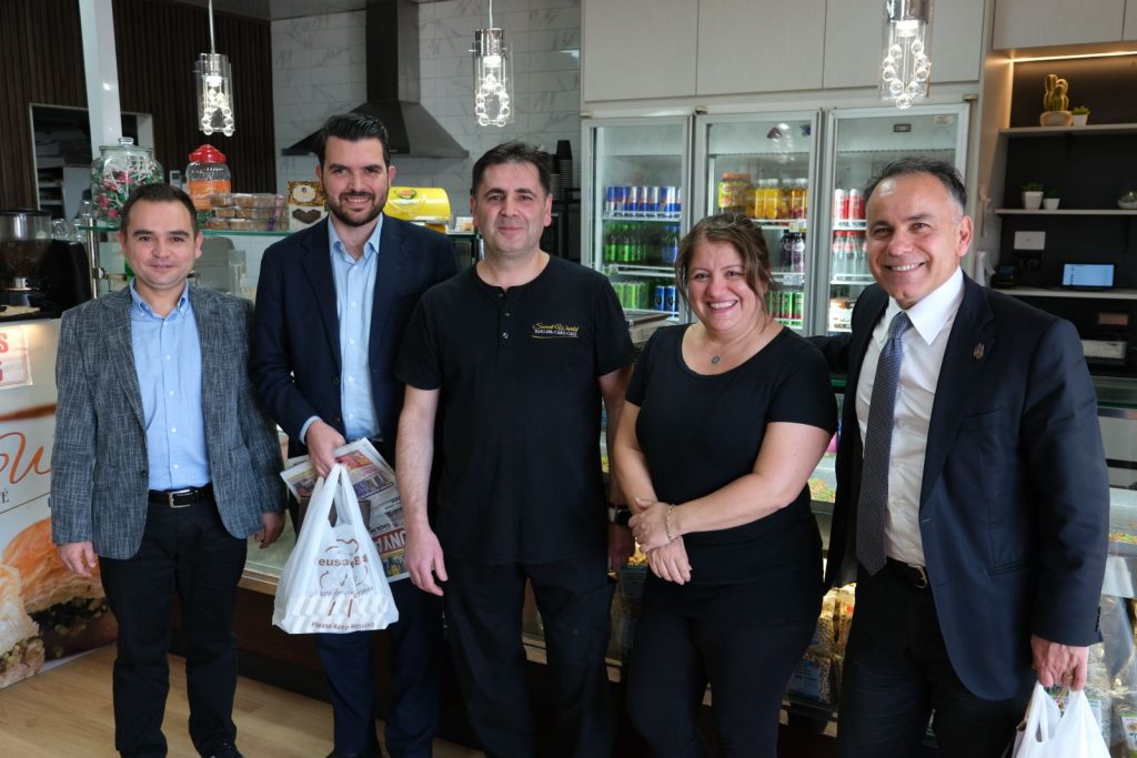 Röportaj sonrası Meadow Heights’taki Sweet World pastanesinin sahibi Sedat Özdemiroğlu ve çalışanıyla (Tülin) hatıra fotoğrafı.