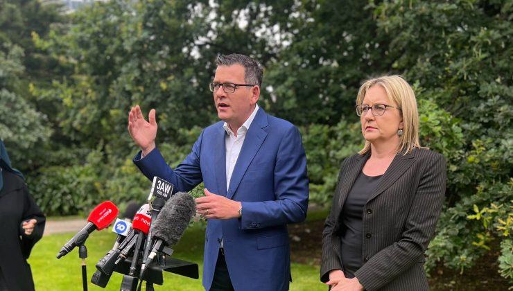 Başbakan Daniel Andrews ve başbakan yardımcısı Jacinta Allan, Labor Partisi’nin tarihi üçüncü galibiyetinin ardından pazar günü medya toplantısı düzenledi.
