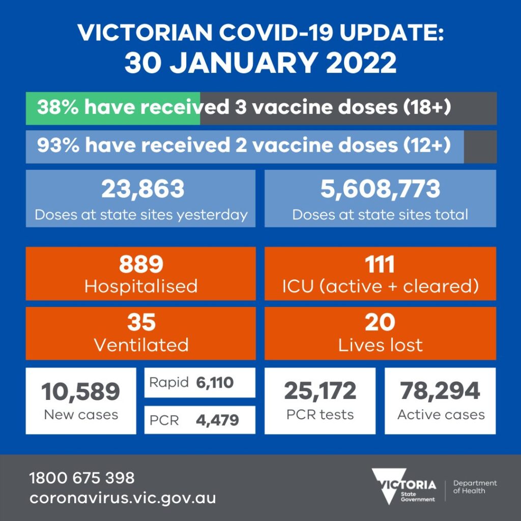 Victoria’da hastaneye yatış rakamı 889’a gerilerken 20 COVID-19 ölümü ve 10.589 vaka kaydetti.