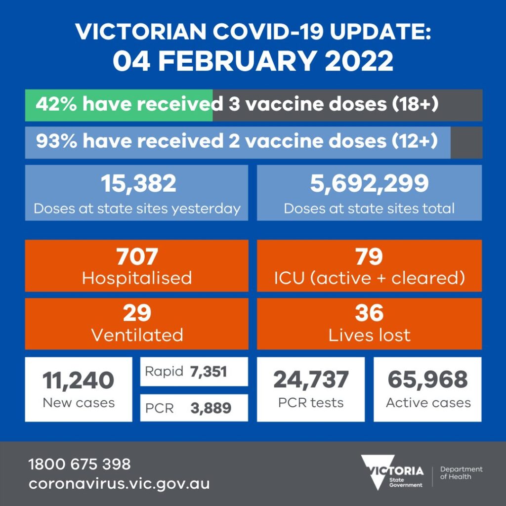 Victoria’nın aşı oranı yükselmeye devam ediyor, yetişkinlerin yüzde 42’si üç doz COVID aşısı almış durumda.