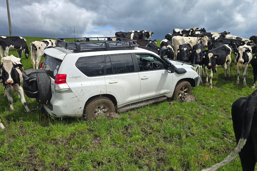 Mark Billing’s car got bogged because it is so wet. (Supplied: Mark Billing)