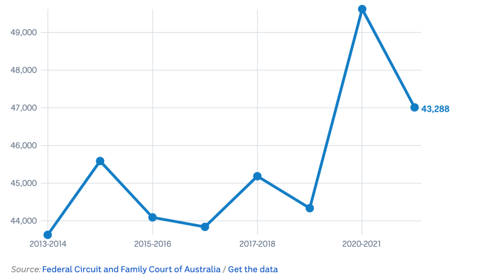 Avustralya Federal Aile Mahkemesine son iki yılda yapılan boşanma başvuruları, son on yılın en yüksek rakamlarına ulaştı.