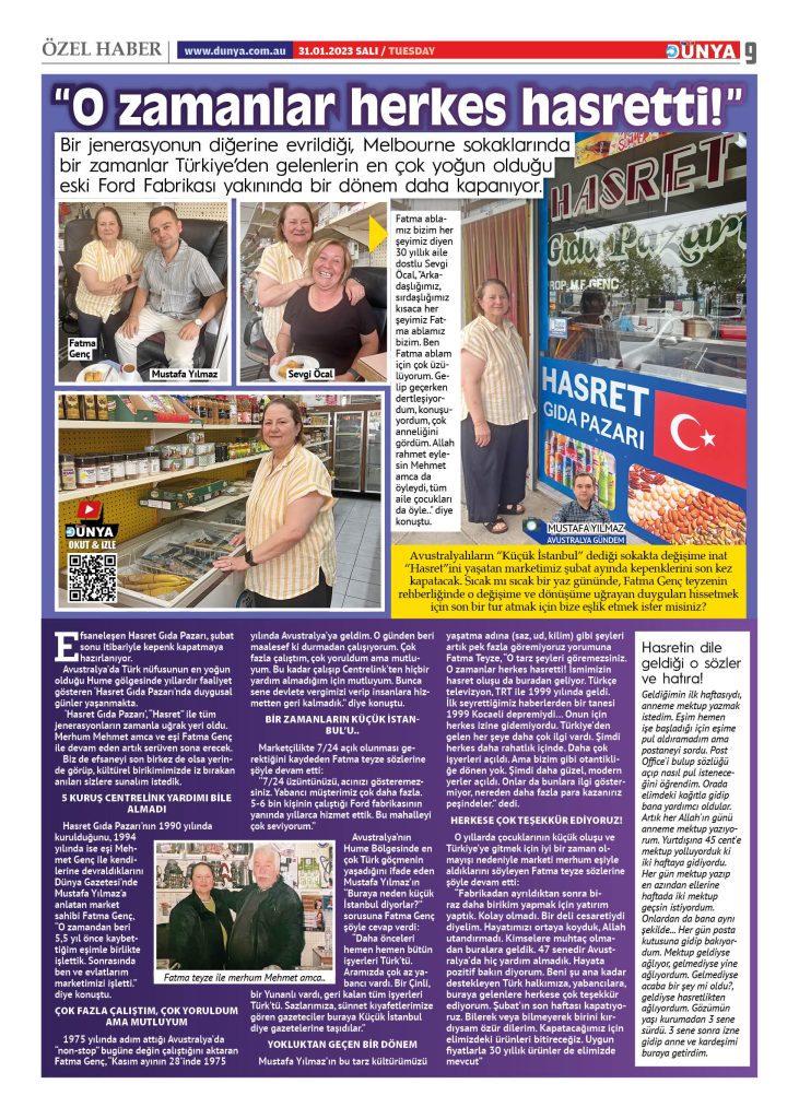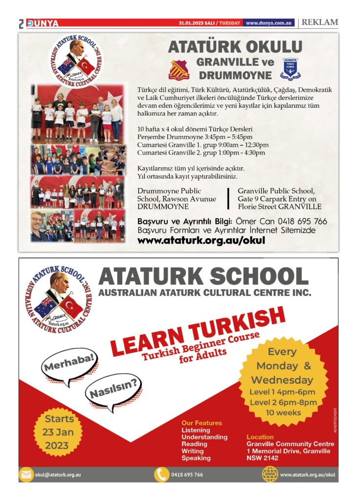 Dünya gazetesinin 31 Ocak 2023 tarihli yeni sayısı çıktı. Gazeteye Melbourne ve Sydney’in seçkin mekanlarından ulaşabilirsiniz.