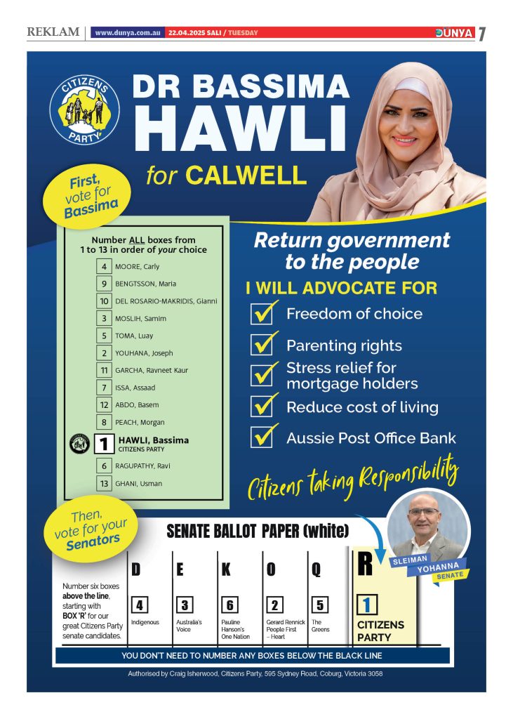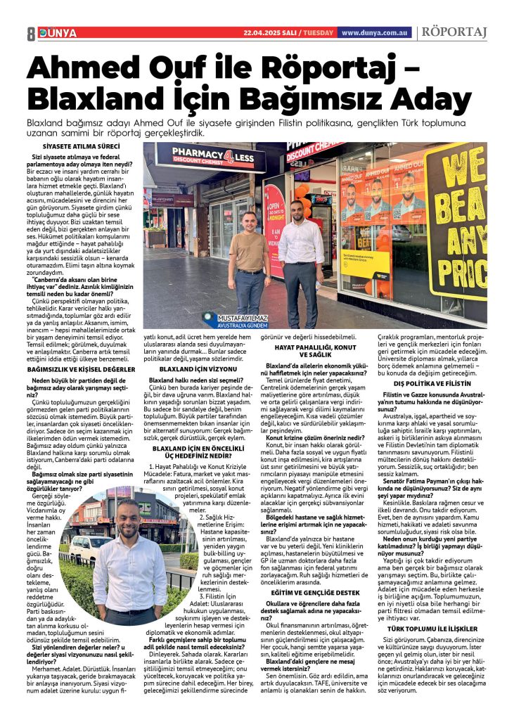 The 22 April 2025 edition of Dunya Newspaper is now available in select venues across Melbourne and Sydney.