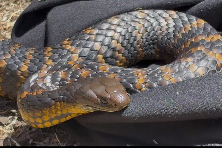 Bu tiger yılanı Kasım ayında Goolwa North’daki bir evde kaydedildi. (Tedarik: Snake Catchers Adelaide)